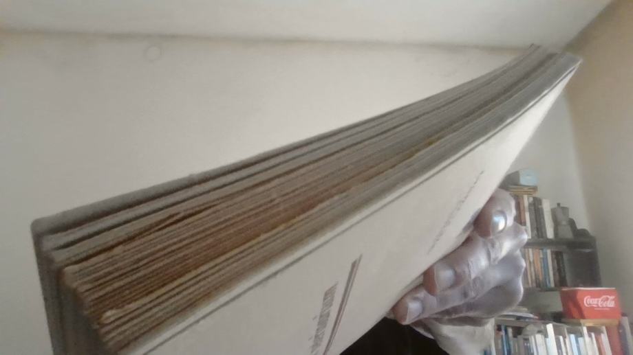 KORICE IMAJU OŠTEĆENJA, MRLJE, NALJEPNICU I ŠTAMBILJ, ŠTAMBILJI UNUTAR KNJIGE, UVEZ SE ODVOJIO OD HRPTA, UGLOVI STRANICA SU POHABANI, A NEKI IMAJU PREGIBE, NEKOLIKO BILJEŽAKA OBIČNOM OLOVKOM UNUTAR KNJIGE
