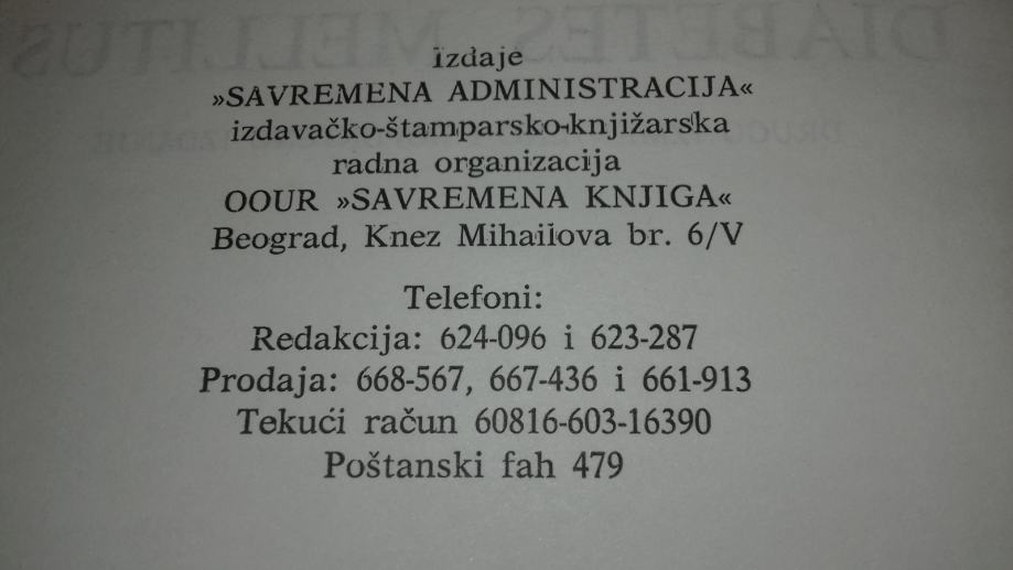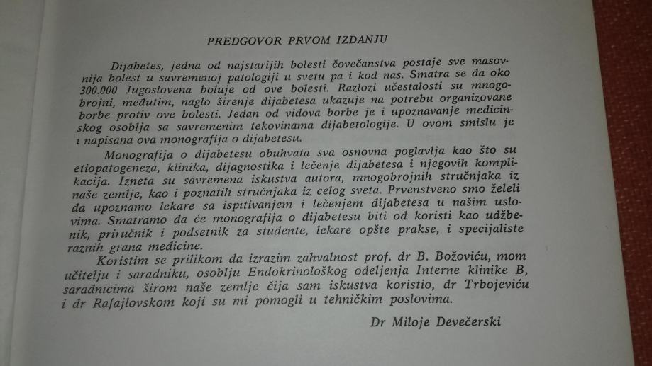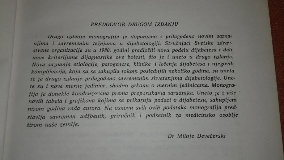 Diabetes Mellitus, dr. Miloje Devečerski - 1982. godina