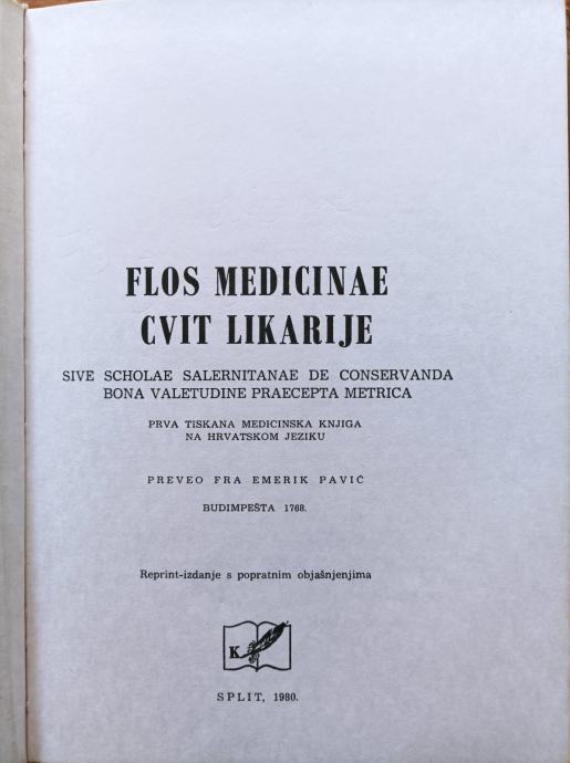 prva tiskana medicinska knjiga na hrvatskom jeziku