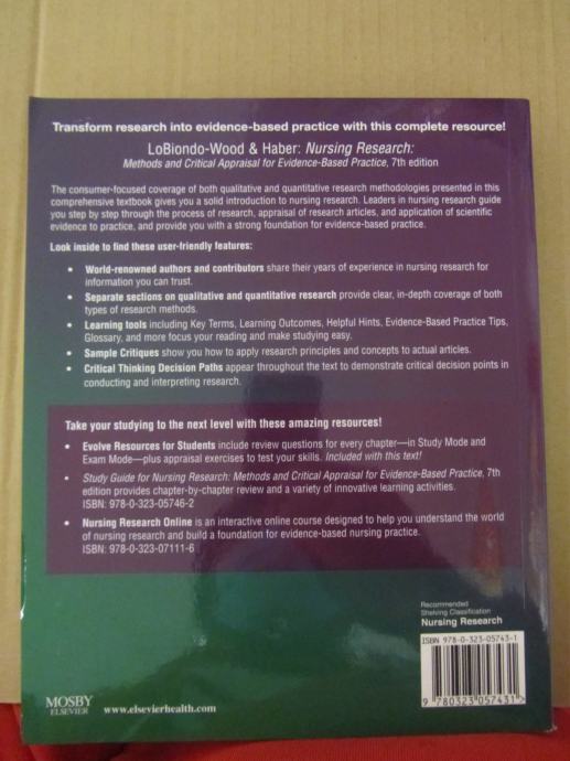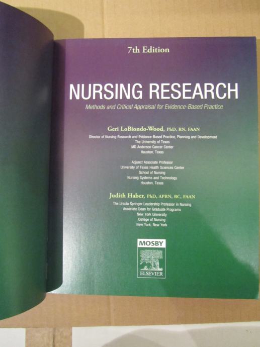 Cijeli naslov: Nursing Research: Methods and Critical Appraisal for Evidence-Based Practice (Nursing Research: Methods, Critical Appraisal & Utilization) 7th Edition