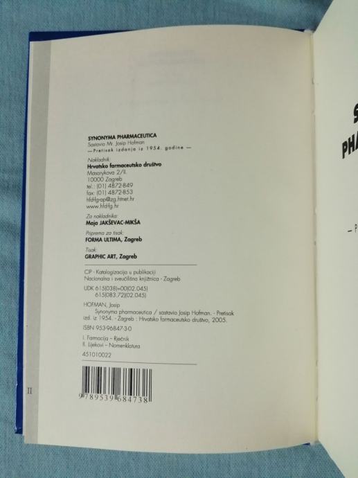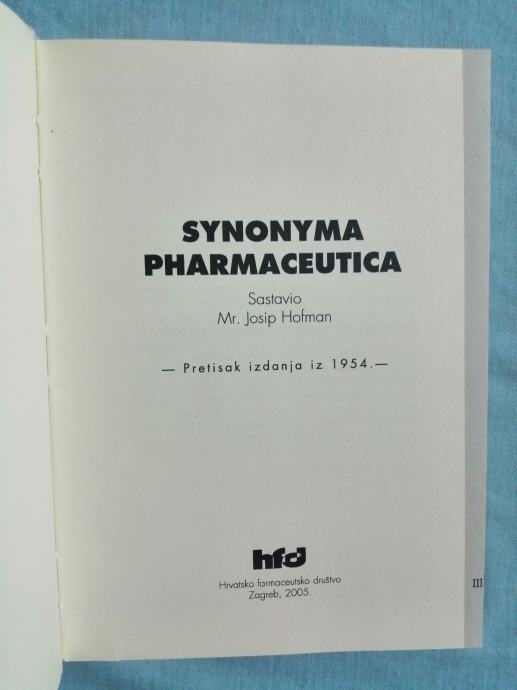 Josip Hofman – Synonyma pharmaceutica : Pretisak izdanja iz 1954.