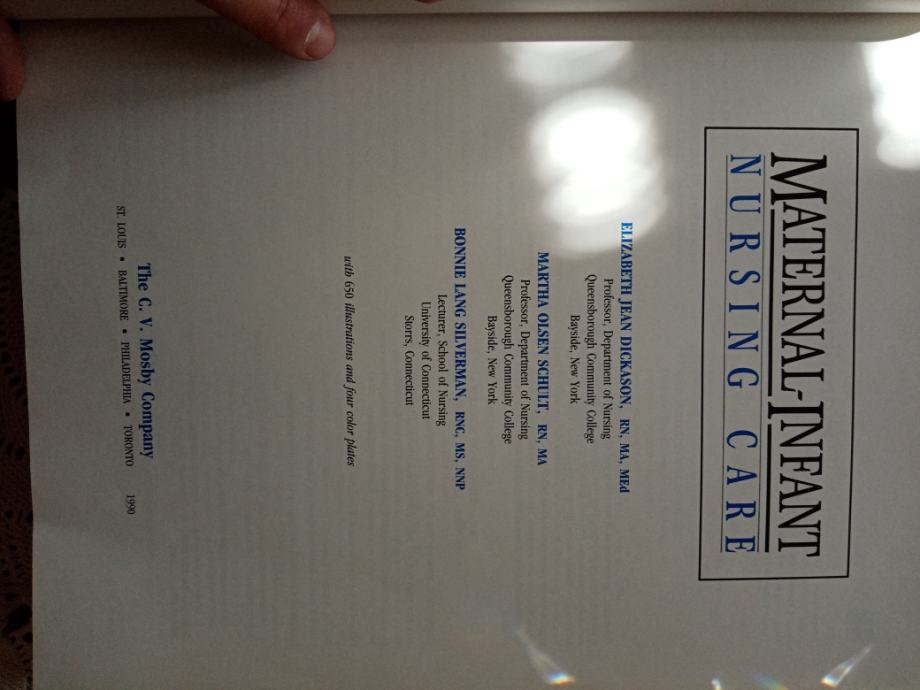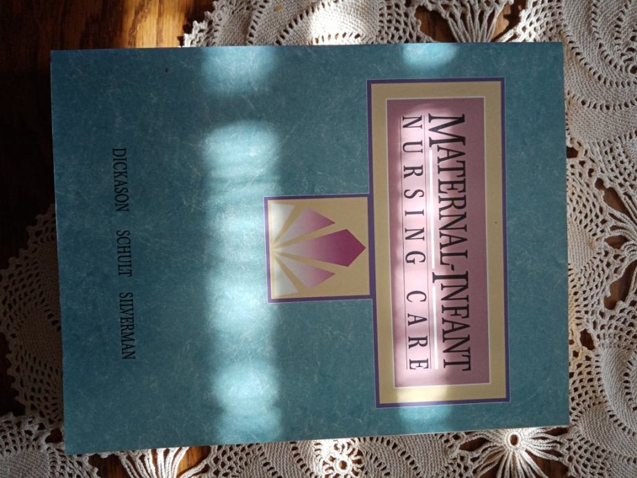 Knjiga Maternal-Infant Nursing care na engleskom jeziku, je stručna literatura za medicinu sa puno teksta i slika. Knjiga je nova, pisci je Dickson, Schult i Silverman. Godina izdanja je 1990. ,a knjiga nije nikada korištena. Ima 670 stranica.