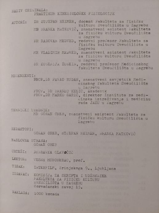 - Fakultet za fizičku kulturu Sveučilišta u Zagrebu , 1985.
