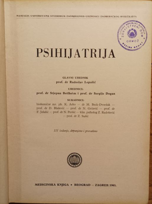 Izdavač: Medicinska knjiga, Beograd, 1965.