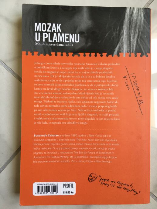 Susannah Cahalan je rođena 1985. godine u New Yorku, gdje se školovala i zaposlila u dnevnom listu "The New York Post" kao reporterka. Radila je tamo otprilike godinu dana prateći lokalne teme kada se iznenada teško razboljela od bolesti koja je drastično utjecala na njeno ponašanje, raspoloženje, sjećanje. Nakon što je izliječena ustanovivši da je njen medicinski slučaj u SAD bio jedinstven, odlučila je da ga istraži.