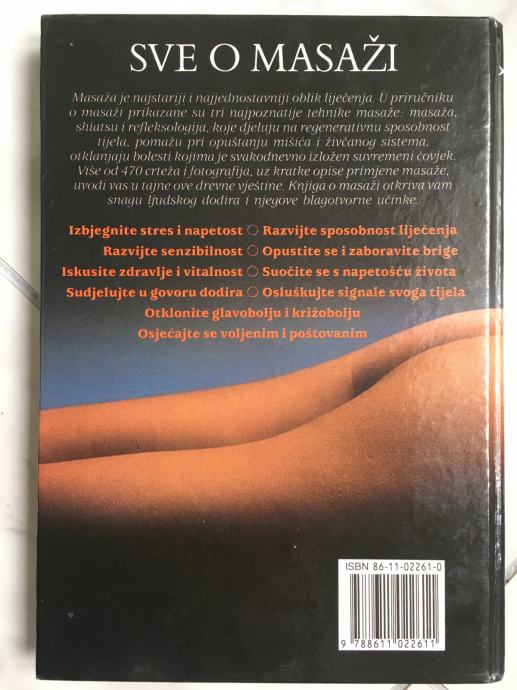 Više od 470 crteža i fotografija, uz kratke opise primjene masaže, uvodi vas u tajne ove drevne vještine. Knjiga o masaži otkriva snagu ljudskog dodira i njegove blagotvorne učinke.