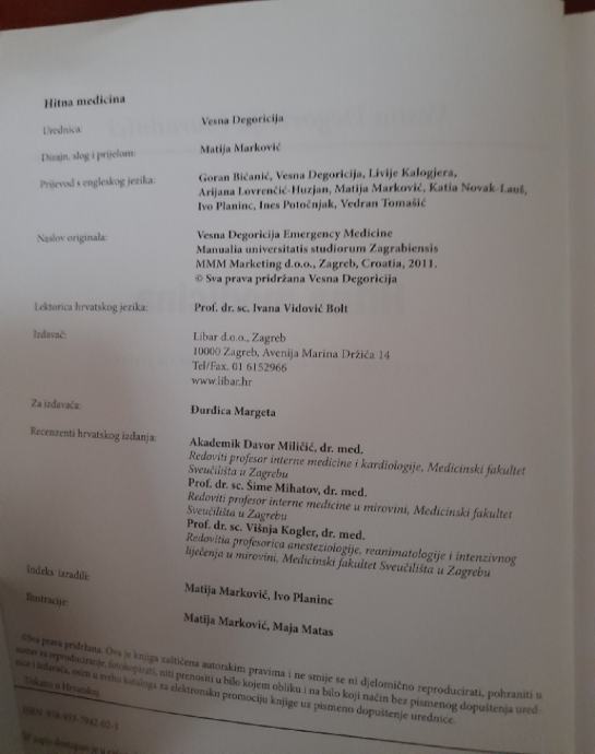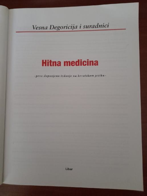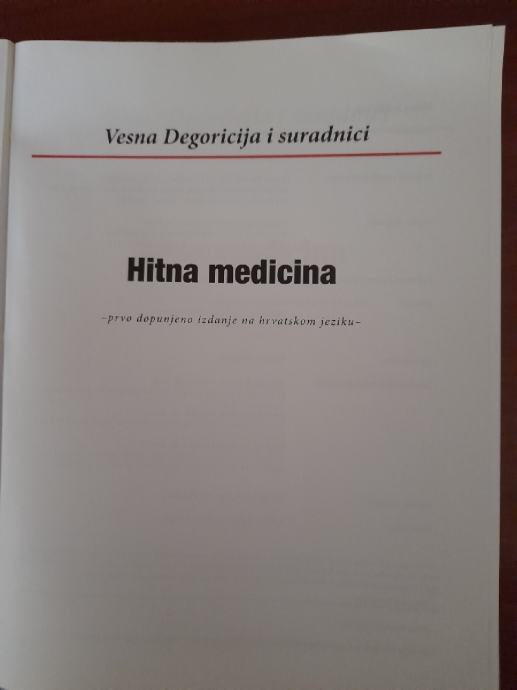 Vesna Degoricija "Hitna medicina", prvo dopunjeno izdanje na hrvatskom jeziku. Tisak Libar 2013. Meki uvez, 460 strana, novo. Sadržaj dostupan na fotografijama. Gornji desni ugao naslovnice malo oštećen, vidljivo na fotografiji.