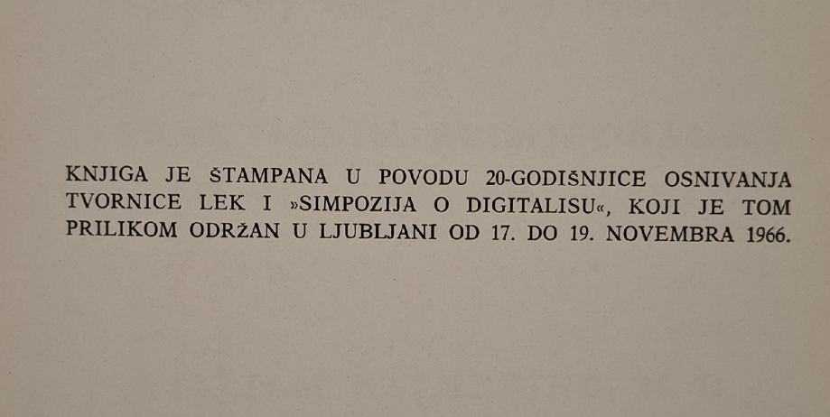 Grupa autora - Simpozij o digitalisu, Ljubljana 17.-19.11.1966. - glavni urednik Branko Volavšek, izdavač Lek Ljubljana, 18 x 24 cm, tvrdi platneni uvez i papirnati omot, 251 stranica.