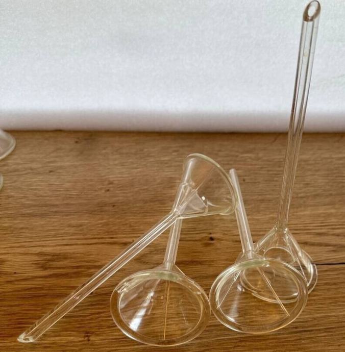 4 x lijevak Schott Duran lijevak za analizu laboratorijskog stakla Ø 6,5 cm, ručka 14,5 cm-imam puno takvih stvari-popust na količinu.