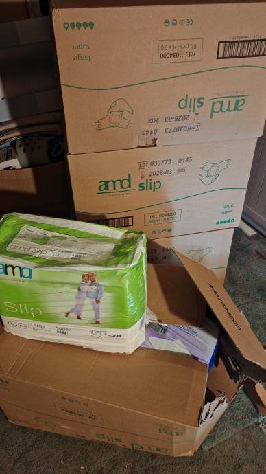 Povoljno prodajem 12 pakiranja kvalitetnih visokoupijajućih pelena u spoju s gaćicama za odrasle osobe opsega bokova 110-160 cm, marke AMD Slip Super; veličine L, moći upijanja 4/5 - oblikovane za jako istjecanje urina i tešku inkontinenciju te za jednostavniju i ergonomičniju zamjenu proizvoda.