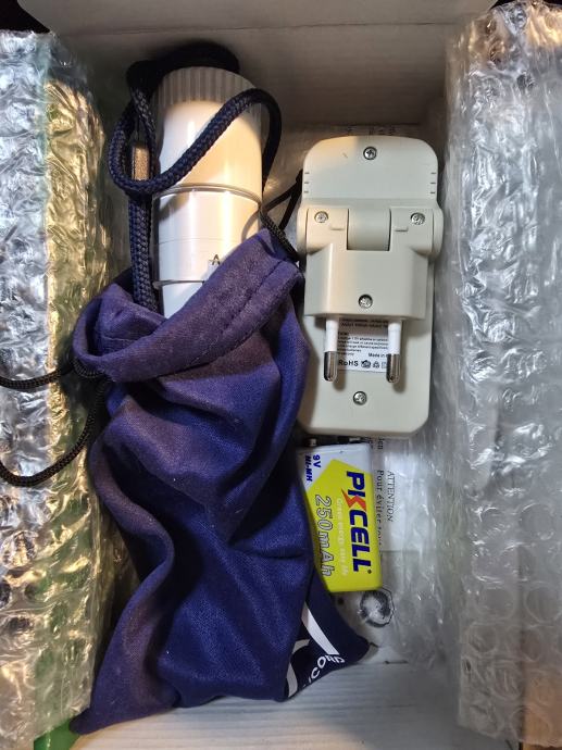 Uređaj dolazi sa torbicom, punjivo. 9V baterijom i punjačem za navedenu bateriju.