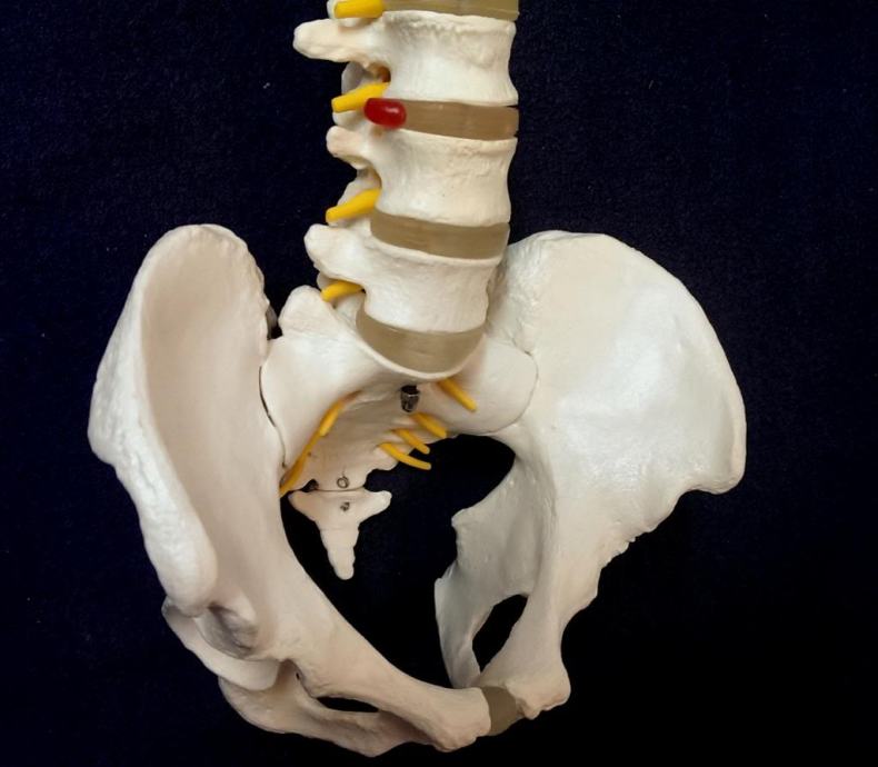 Vertebralni model ima potpunu zdjelicu, sakralnu, okcipitalnu kost, kralješnicu kralješnice i grane živaca. Model također pokazuje hernijacijski disk između 3. i 4. lumbalne kralješnice. Vertebralni model dolazi s metalnim stalakom koji je uključen.