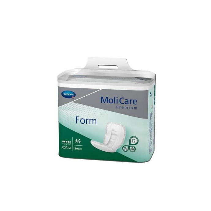 MoliCare Premium Form Extra ulošci za inkontinencijske tegobe sadrže antibakterijsku, pH neutralnu Dry Plus jezgru koja brzo i sigurno upija tekućinu te je svojim sustavom kanala ravnomjerno raspoređuje u unutrašnjosti uloška.