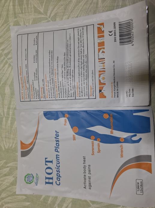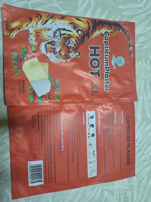 te HOT Capsicum/Menthol flasteri/veličine 12x18 cm, 2 XL HOT CAPSICUM/MENTHOL FLASTERA u paketu, ukupno 6 flastera veličine 12x18 cm.