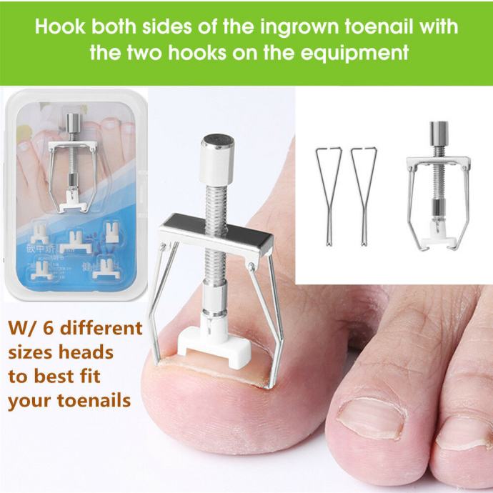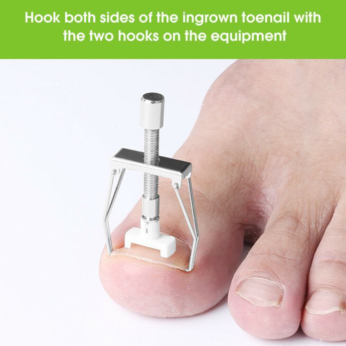 zakačite obje strane uraslog nožnog prsta s dvije kuke na opremi, uvrnute maticu kako biste učvrstili opremu na noktu na nozi kako biste je polako pojačali dok se ne osjeti ekspanzija.