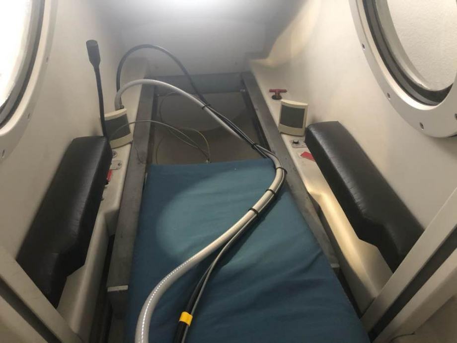 CIJELI HIPERBARNI CENTAR - Sadrži preuređenu hiperbaričnu komoru HTU-2 iz potpuno radnog centra, zračni kompresor, O2 sustav, rezervni razvodnik i napajanje.