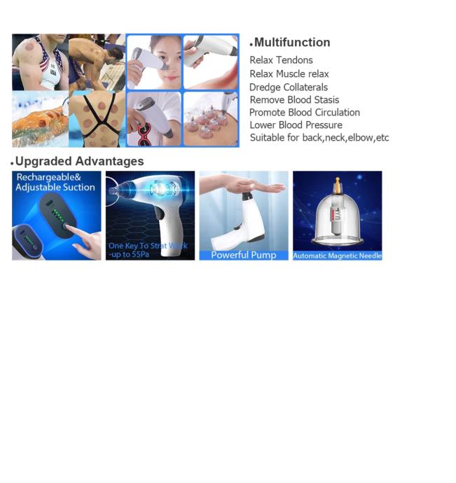 -Električni cupping uređaj koristi vakuumsku cupping terapiju, koja je u smislu snage i profesionalnosti učinkovitija od ručnog cuppinga.