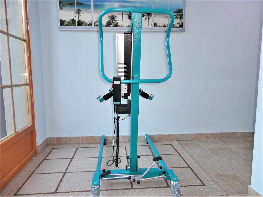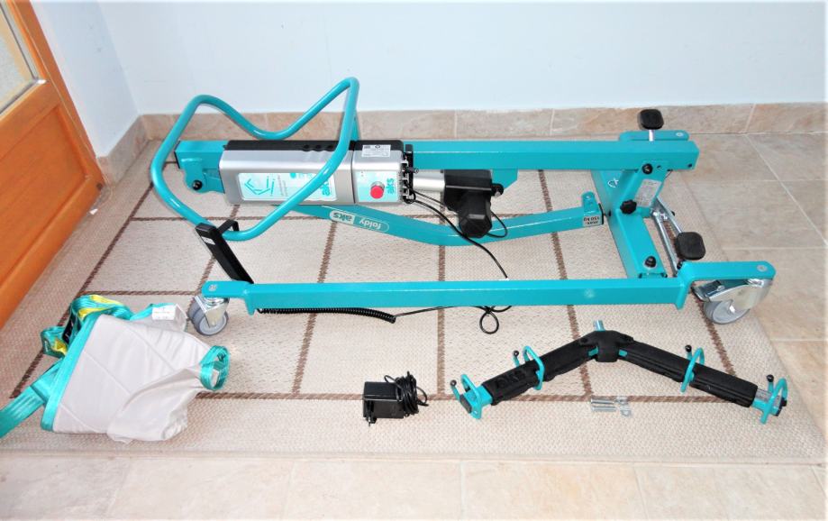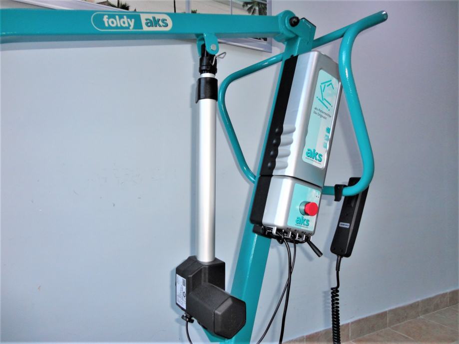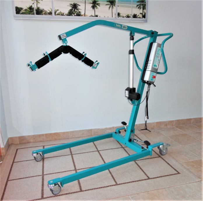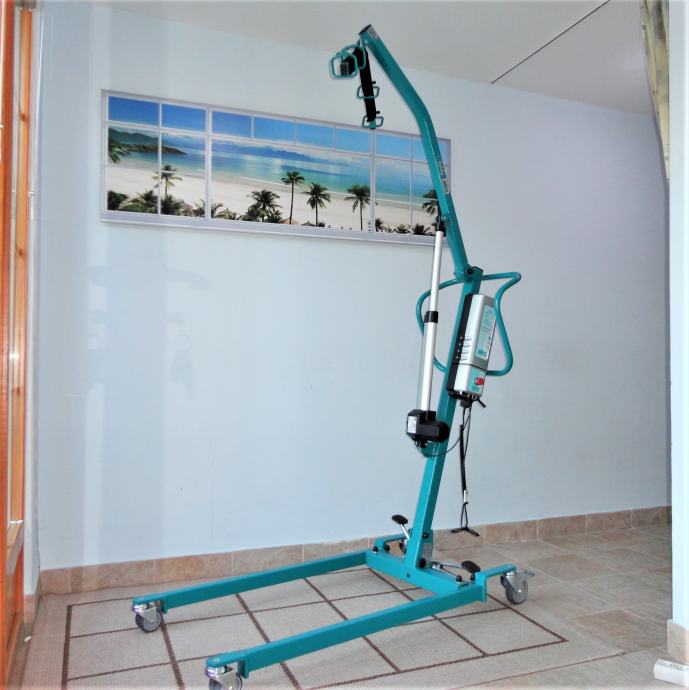 Odlično očuvani akumulatorski sobni lift za prijenos pacijenta. Njemačkog proizvođača AKS, model "Foldy", s konstrukcijom u svijetlozelenoj boji, najprodavaniji je električni sobni lift u Njemačkoj – kako u rehabilitacijskim zdravstvenim ustanovama, tako i u kućnom okruženju.