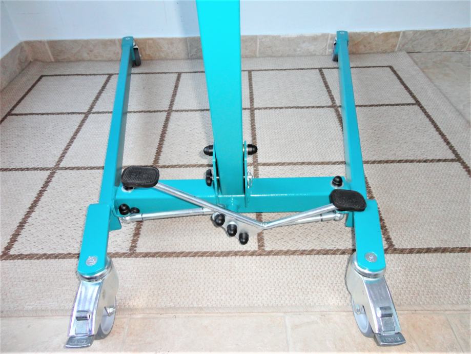 Na donjoj strani stabilnog i kompaktno izvedenog podvozja lifta nalazi se šest manjih, čvrstih i upravljivih transportnih kotačića. Na stražnjim kotačima ugrađene su nožne kočnice za fiksiranje lifta tijekom podizanja ili spuštanja pacijenta na određeno mjesto. Donjom dvodijelnom nožnom polugom širina podvozja mehanički se i kontinuirano podešava od 64 cm do 106 cm, što omogućuje veliku stabilnost, visoko opterećenje i olakšan pristup invalidskim kolicima s prednje strane.