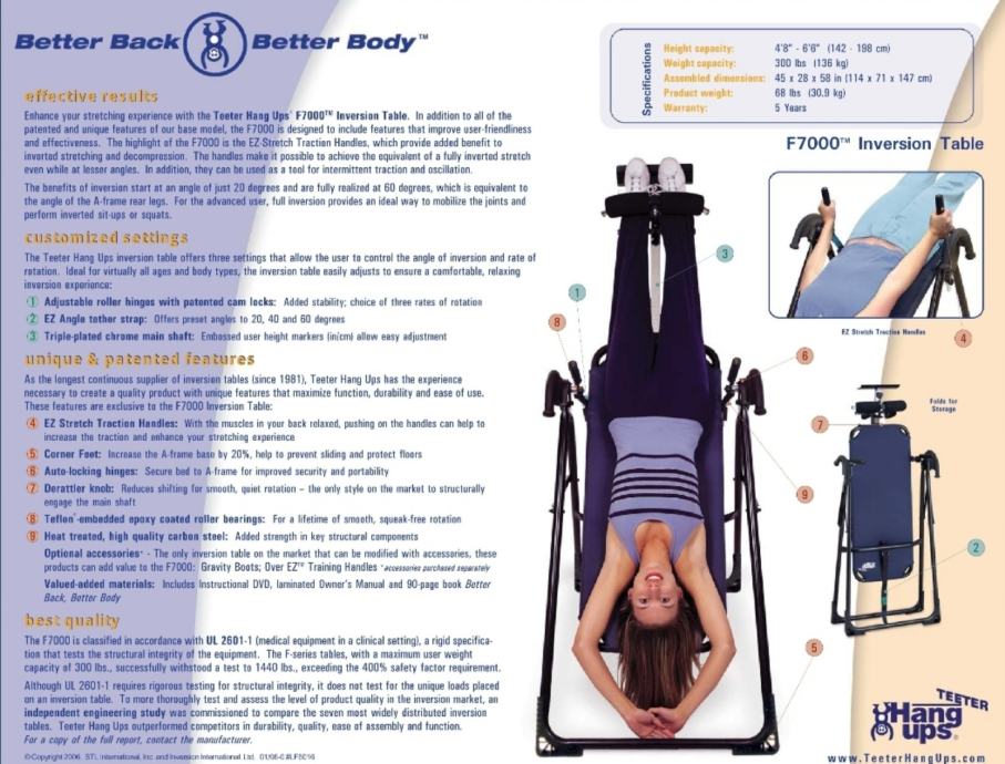 Teeter HangUp medicinski stol za vertikalno vježbanjeTko ima problema sa kičmom, ovo je prava stvar. Made in USA. Malo korišten, knjiga i CD sa instrukcijama. Sve u odličnom stanju bez ikakvih oštečenja.