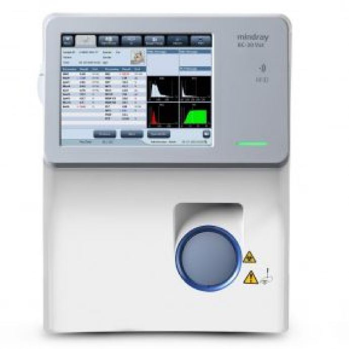 3 scattergram, 3 histograma, 60 uzoraka/sat Volumen uzorka 13µL, predil. 20µL, touch screen 10.4'' TFT zaslon u boji, ugrađeni termalni printer, 50mm širina ispisa, mogućnost priključenja na vanjski printer i kompjutor