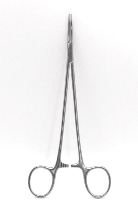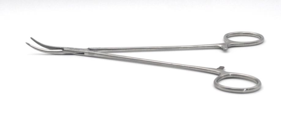 Malo rabljeni zakrivljeni hemostatski pean Mosquito. Duljina je 18 cm. Autoklavabilan.