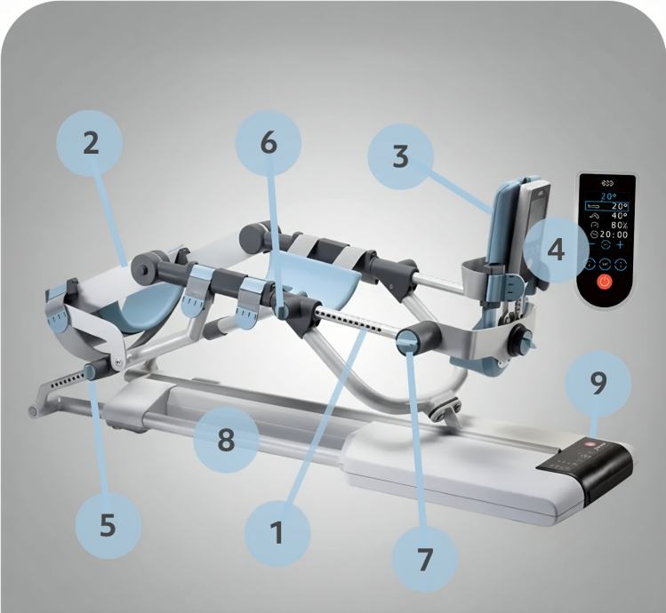 Uređaj za terapiju, rehabilitaciju i oporavak koljena i kuka nakon operacije ili povreda.