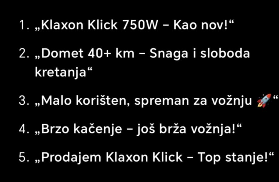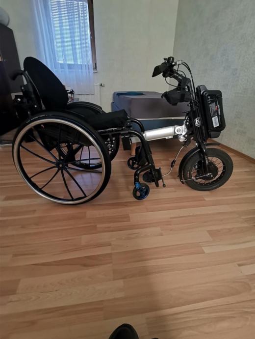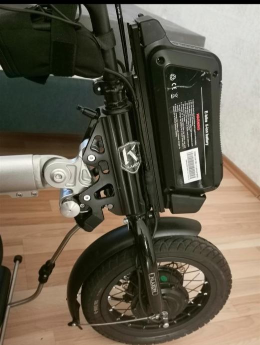 Prodajem klaxon klick,750w,dvije disk kočnice, za lijevu i desnu ruku,plus motorna kočnica kojom punite bateriju prilikom kočenja.tri odabira brzina (3-5-9) brzina.jednostavno kačenje na sva ručna i aktivna invlicka kolica.kačenje klick sistem. Vozilo malo voženo .jednim punjenjem ,domet 40+ kilometara kotač 14".