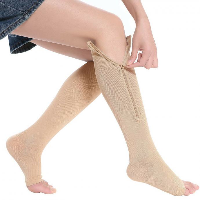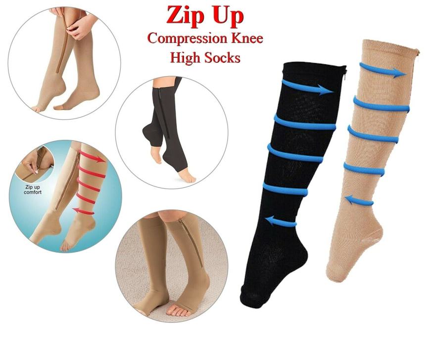 KOMPRESIJSKE KOMPRESIVNE ČARAPE DOKOLJENKE DOKOLJENICE NOGAVICE ZATVARAČ PRSTI VENE ZIP-UP DO 4XL