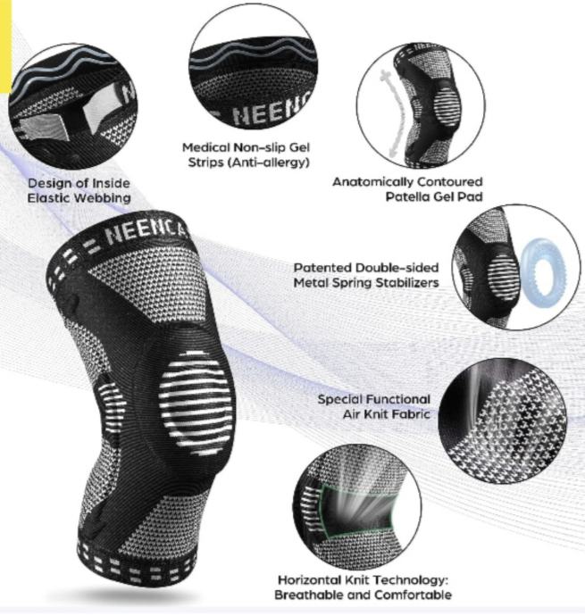 NEENCA potpora za koljena, komprimirani steznik za koljeno s jastučićima od gela za čašicu i bočnim stabilizatorima s oprugom, medicinski jastučići za koljena za trčanje, pucanje meniskusa, artritis, ublažavanje bolova u zglobovima, ACL,