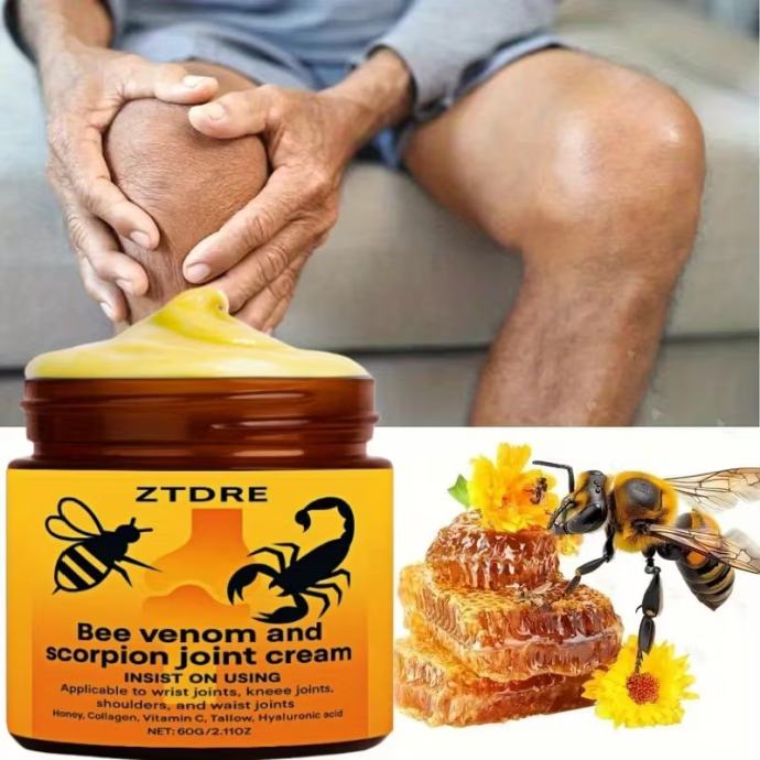 Krema za masažu zglobova s pčelinjim otrovom i škorpionom 60 g/2,11 oz, s kolagenom, retinolom, vitaminom E, medom, biljnim skvalanom i hijaluronskom kiselinom - pogodna za tijelo, vrat, koljena, ruke, noge i struk, dubinska hidratacija do 72 sata, idealna za noge