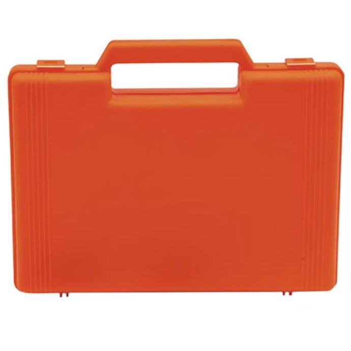 Kutija od polipropilena otporna na udarce, narančaste boje, s ručkom za nošenje. Namijenjena za apartmane, sobe i stanove koji se iznajmljuju.