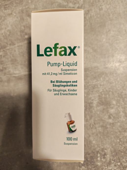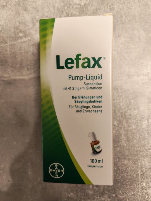 Prodajem Lefax Pump-Liquid kapi protiv grčeva, novo i neotvoreno. Radi se o suspenziji s 41,2 mg/ml simetikona, namijenjenoj za ublažavanje nadutosti i grčeva kod dojenčadi, djece i odraslih. Volumen je 100 ml, a dolazi s pump-dozatorom.