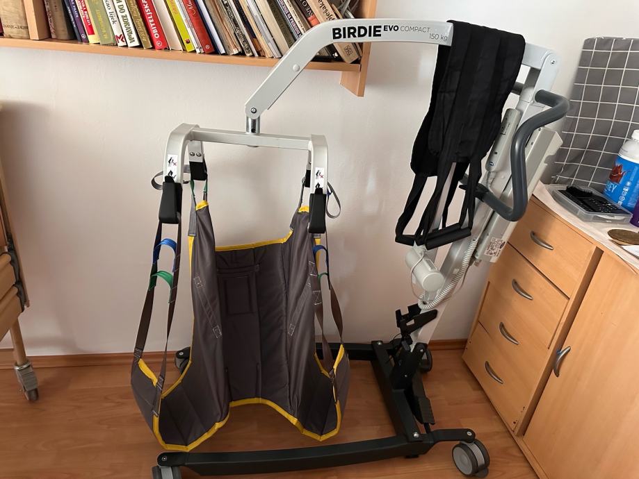 Lifter na kotačima sa kočnicama na stražnjim kotačićima i sa standardnom gurtom. Idealan za svakodnevno dizanje korisnika. Sklopiv, te je prigodan i za transport. Sluzi za pomoć u podizanju i premještaj polupokretnih i nepokretnih osoba. Moguće ručno ali i električno dizanje .Skoro novo, staro cca mjesec dana , korišteno max 2-3 puta. Pod garancijom. Imamo i račun. Moguća dostava prema dogovoru, Varazdin i bliža okolica