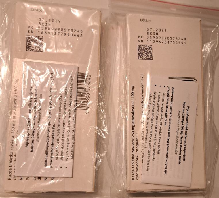 Prodajem malarone tablete (antimalarike) za prevenciju i liječenje malarije: Atovaquonum + Proguanili hydrochloridum (250 mg + 100 mg).