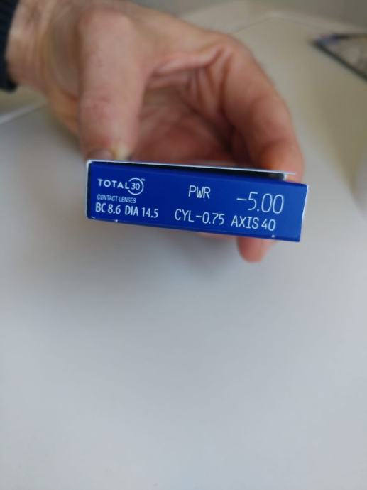 Prodajem mjesečne kontaktne leće za astigmatizam, Alcon Total 30 sa sljedećim parametrima: