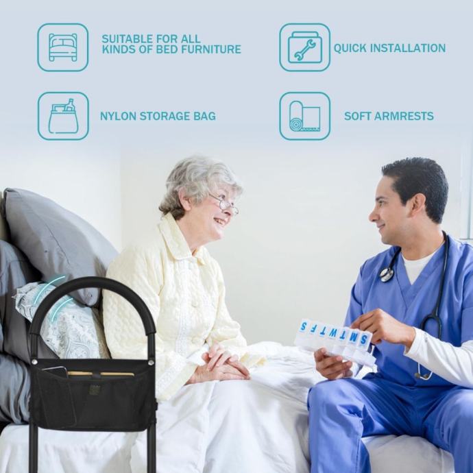 Za dodatnu stabilnost, ograda je opremljena protukliznim rukohvatima, koji korisnicima osiguravaju siguran oslonac prilikom ustajanja ili ulaska u krevet. Noge ograde su dizajnirane za pružanje čvrstog držanja, smanjujući mogućnost nesreća i povećavajući osjećaj sigurnosti. Bez obzira na vašu fizičku sposobnost, možete se osloniti na ovu ogradu svaki put.