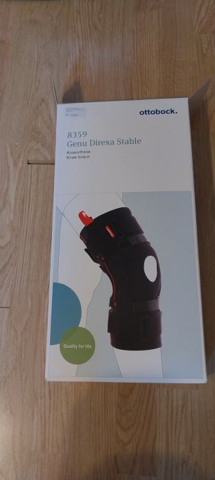 Ottobock 8359 Genu Direxa Stable. Ortoza za stabilizaciju koljena. Ortoza u odličnom stanju - jednom stavljena na koljeno. Sva dokumentacija i pomagala koja dolaze u originalnom pakiranju su priložena. Cijena novog proizvoda - 85€.