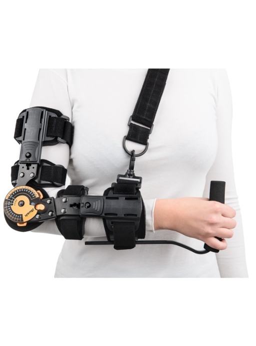 Ortoza s mogućnošću kontroliranja opsega pokreta zgloba lakta (namještanje kuta svakih 10°).Mogućnosti brzog zaključavanje kuteva 0°, 15°, 30°, 45°; podešavanja dužine i širine ortoze.