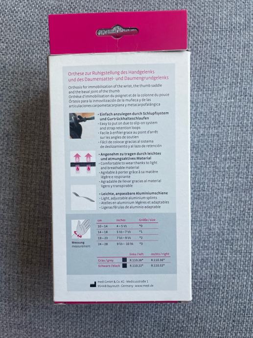 Ortoza za desni ručni zglob i/ili palac (Manumed T) tamno siva