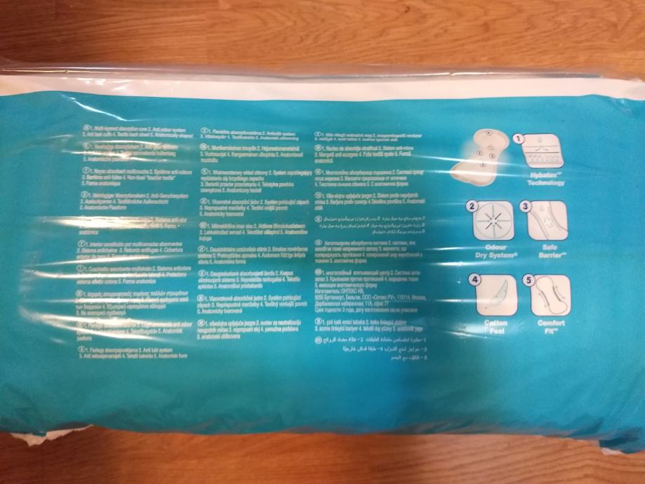 Ukupno 12 paketa po 28 pelena i 16 paketa po 21 pelenu koje su nekoliko centimetar krace od prvih.