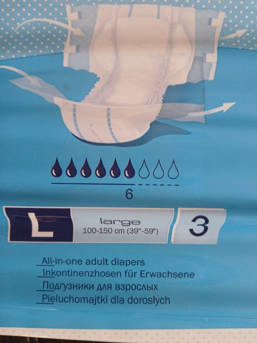 Prodajem 4 paketa pelene za odrasle velicina L.Paket 10€