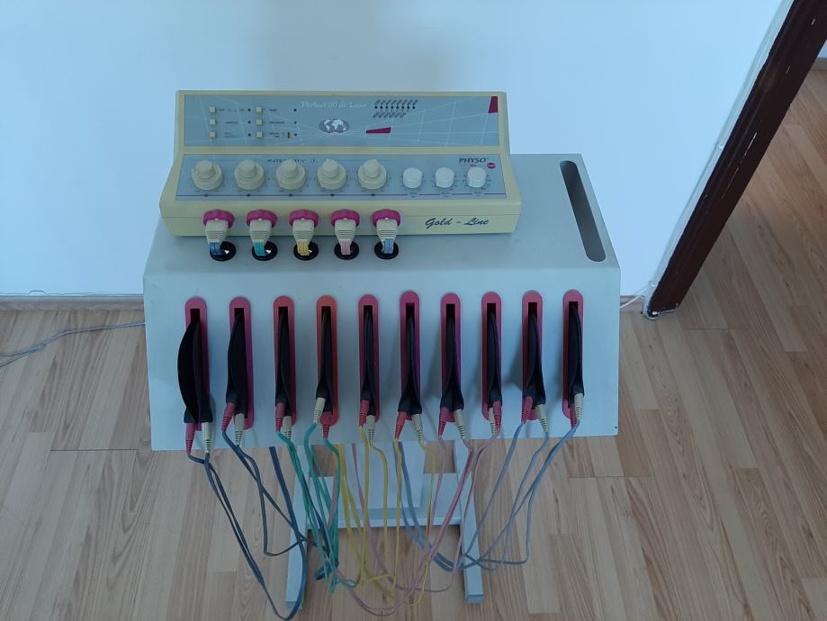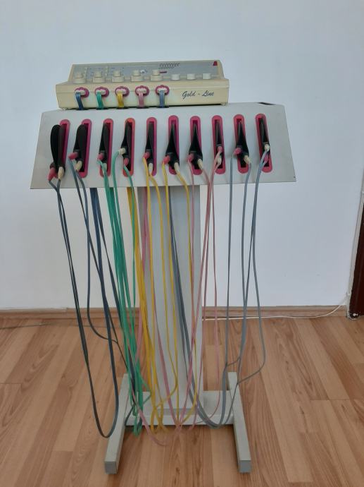 Mišićni stimulator za stimulaciju tijela i lica, samostojeći. Korišten, ispravan. Godina proizvodnje 1996. Paket sadrži uređaj za mišićnu stimulaciju sa pripadajućim elektrodama, trake za učvršćivanje elektroda, elektrode za stimulaciju mišića lica.