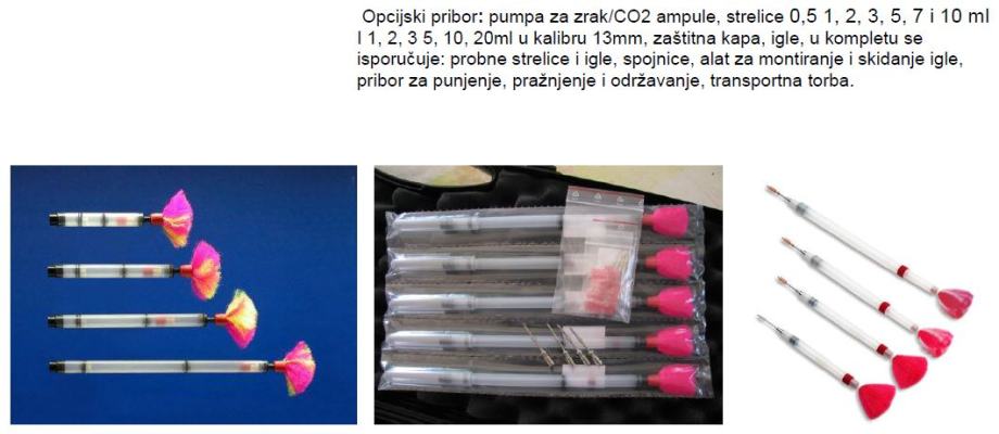 Prodajem pribor (strelice, igle, pribor za punjenje...). za hvatanje ili cijepljenje životinja na daljinu: krava, goveda, konja, ovaca, koza, svinja, divljači, pasa i slično. Moguća poduka.