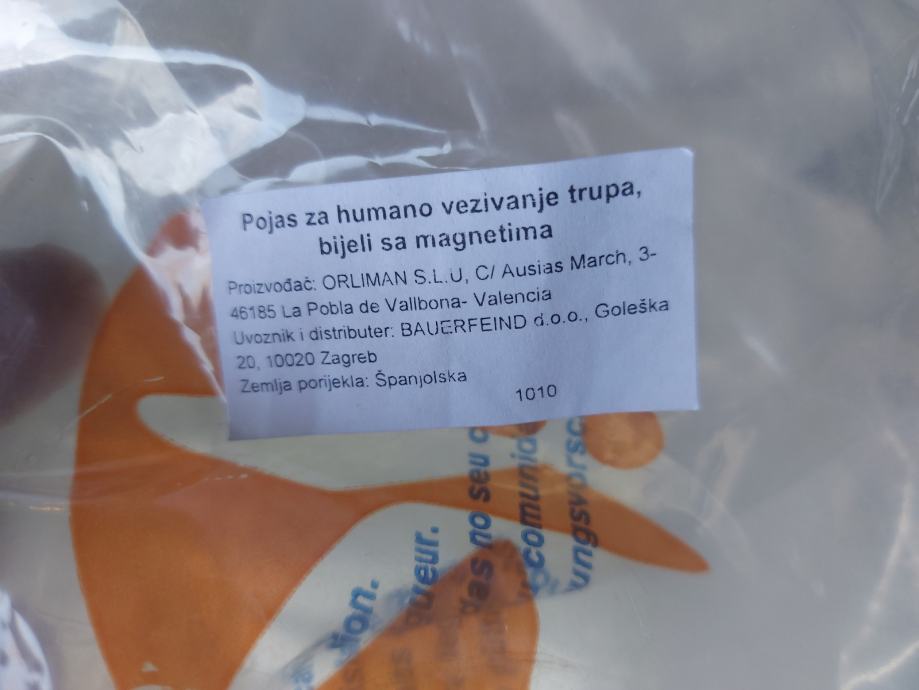 Pojas za humano vezivanje za trup i ima dodatak za ruku.