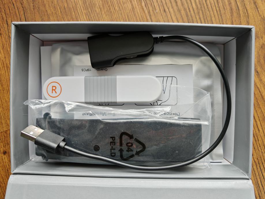 Uređaj za praćenje otkucaja srca je zapakiran u tvorničko pakiranje sa originalnim dodacima.