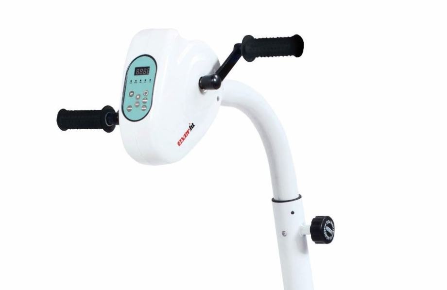Električni bicikl za rehabilitaciju i razgibavanje sa 2 neovisna električna motora. Moguće je uključiti samo gornji dio za vježbanje ruku ili samo donji dio za vježbanje nogu, a moguće ih je uključiti istovremeno oba. Ovaj bicikl ima 2 motora, koji pokreću pedale naprijed ili nazad. Možemo birati između 12 različitih brzina, kao i željeni smjer kretanja pedala, plus 5 predviđenih programa treniranja koji se nalaze u memoriji.Funkcije ekrana:čas vježbanja ili odbrojavanje časa vježbebroj ponavljanjabrzina vježbanjapređena distancauporaba kalorijascanKruženje naprijed ili nazadVisina podesiva po željiBrzina obrtaja od 28 do 76 krugova u minuti5 već memorisanih programa vježbanja2 neovisna motoraErgonomične ručke s pasom za noge
