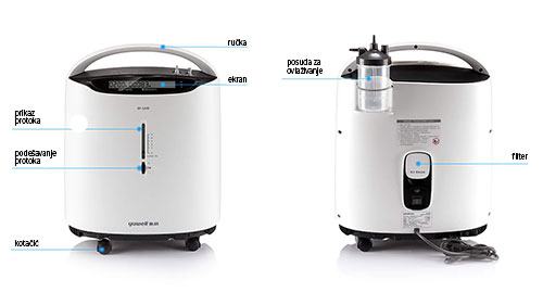 U kompletu dolazi i crijevo s nosnom kanilom tako da je koncentrator odmah spreman za uporabu.