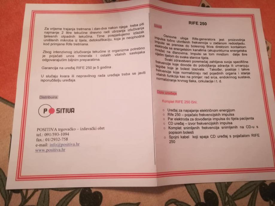 RIFE 250 - terapija frekvencijama za liječenje raka i drugih bolesti