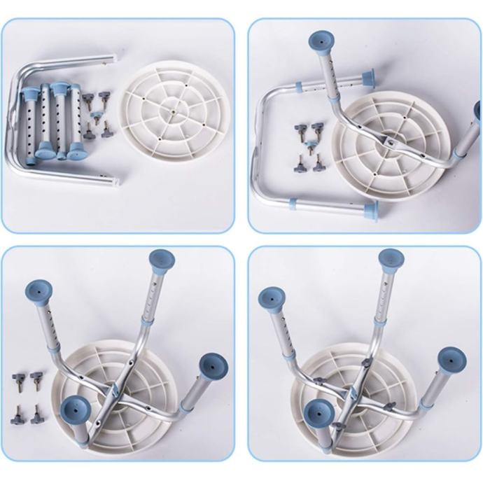 Ova rotirajuća stolica savršeno se uklapa u gotovo svaki tuš ili kupaonicu, čineći je praktičnim rješenjem za sve prostorije. Njezin kompaktni dizajn omogućuje jednostavno premještanje, pa je pogodna i za korištenje na putovanjima ili u manjim prostorima.
